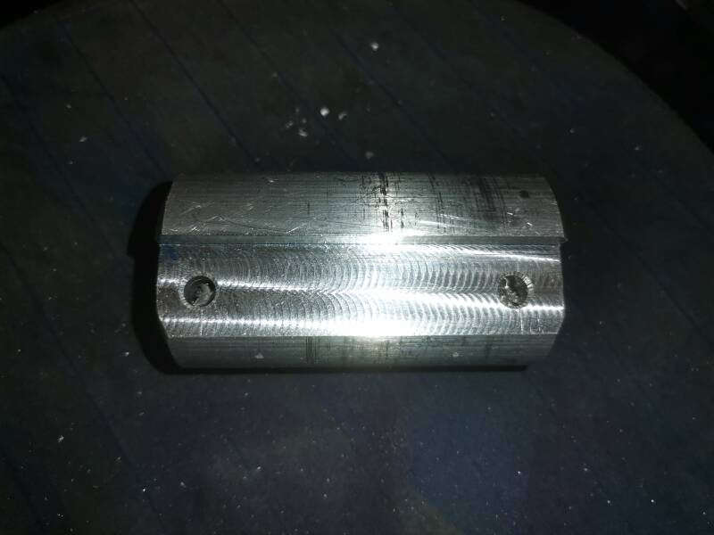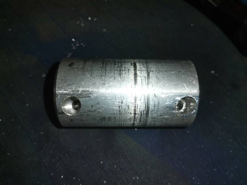 Picture left top ready to have bushing pressed in. Bushes made and pressed home with the hydraulic press. CS set screws fitted to make sure it will not go anywhere.